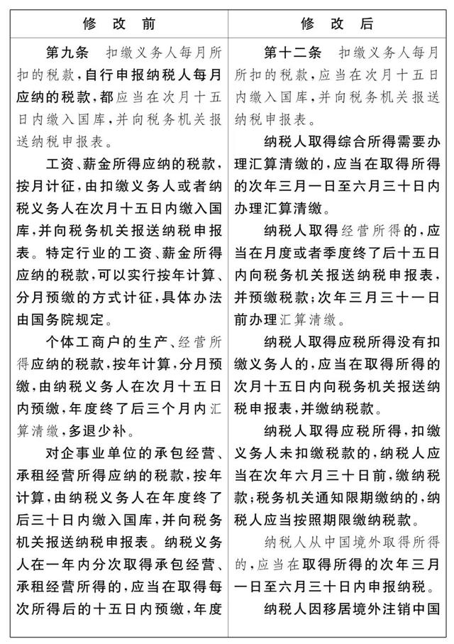 下面附上对照表,来看看个税法修改前后究竟有哪些不同吧~